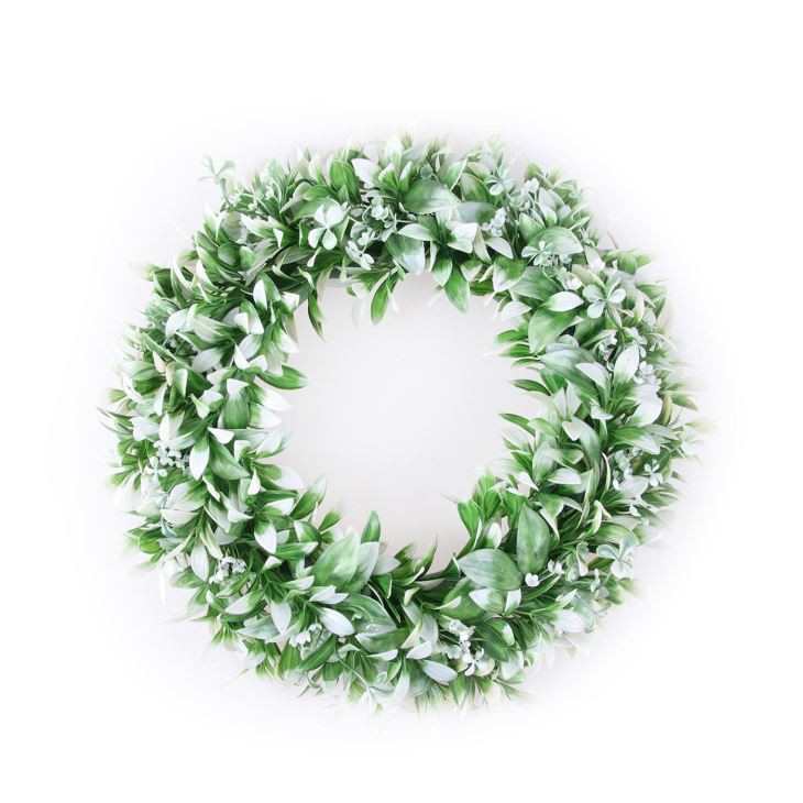 This all-season wreath is made from artificial bright Hedyotis Leaves that covers both the front and back, accented with brown durable twigs that cover the base of the wreath.
